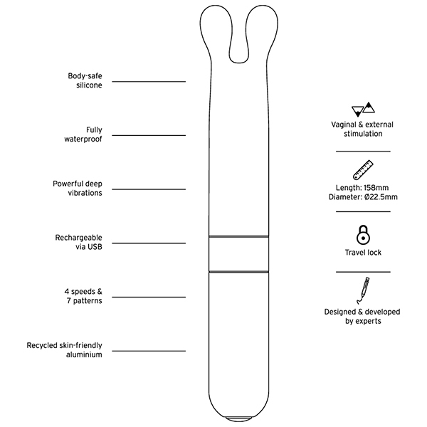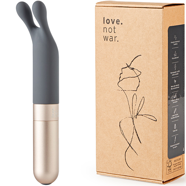 Love Not Warバレットシリーズは、美しいデザイン性とサステナブルであること、どちらも兼ね備えた素材「リサイクルアルミニウム」をベースに作られています。お肌に直接当たる先端部分は、ふんわりとソフトな心地よいシリコン。表面がベタつかず、なめらかですべすべしています。柔らかさを保ちつつもホコリは付きにくく、洗い流してお手入れすることが簡単です。撫でるように繊細な振動から、お腹の中心に向かって響きわたるパワフルな振動、さらに、リズミカルな脈動まで、全10種類のバラエティに富んだ振動パターンを選べます。ボタン一つでシンプルな操作。便利なのはトラベルロック機能。トラベルロック機能で持ち運びに便利。30分以内であれば1mまで浸水可能な完全防水仕様なので、万が一浴槽に落としてしまっても安心。バスルームでも楽しめて、使える幅も広がます。●素材:シリコン、リサイクルアルミニウム、リサイクルABS樹脂、バイオプラスチック●充電方法:USB●充電時間:フル充電2時間●連続使用可能時間:最大1時間●振動パターン:10(振動強弱4段階+リズムパターン6種)●防水:完全防水(IP67)●トラベルロック機能つき※こちらの商品は受注発注商品の為、ご注文から発送までに3、4営業日掛かる場合が御座います。