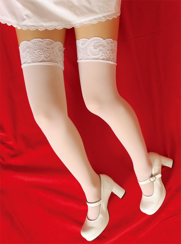 ゴージャスで洗練されたレースがセクシーなストッキング。清潔なホワイトが、上品で華やかな大人の魅力をより引き立ててくれます。あなたの脚線美を艶やかに演出してくれるストッキングです!※ショーツは別売