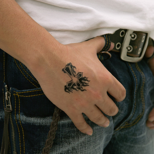 商品番号:b14891 タトゥーシール 炎と十字架