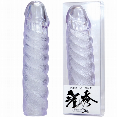戦国武将の名に相応しい、夜の頼もしい味方が登場!フルカバータイプの男性用補助グッズ「戦国スーパーリング 光秀」は、パープルカラーのボディ全体にリングを幾重にも重ねたようなデザイン。装着すれば何重ものデコボコが、パートナーを刺激!もちろん早漏防止効果もアリ!サイズはハサミ等でカットし、調節もできます。