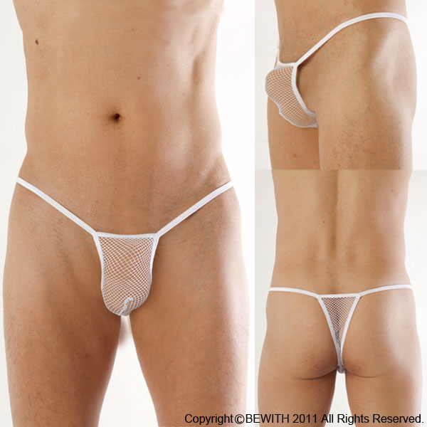 <EROX>これぞオトコの勝負パンツ!フロント&バックを白のメッシュ生地で仕上げた、ワイルドな男性用ビキニショーツ。サイドは無駄を省いたシンプルな紐仕様!男のエロスを惜しみなく披露できる男性用セクシー下着です。