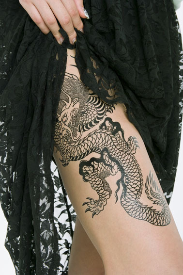 商品番号:b18529 タトゥーシール 大型・線画黒龍