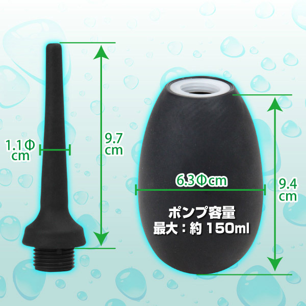 洗浄も快感もお任せあれ!アナルにぴったりな使いやすい150mlサイズの洗浄器。ポンプを押して先端のノズルから中の液体を発射する仕組み。ポンプの中にローションを注入すれば、アナニーに最適なアナルディルドに!また、液体を注入すればプレイ前後の洗浄器具としても使える優れもの。肌に優しく挿入もしやすい、シリコン製のアナルグッズです。ココローション30ml付き。※専用の取替ヘッド(b19707)(b19708)(b19709)(b19710)(b20854)も販売中です。
