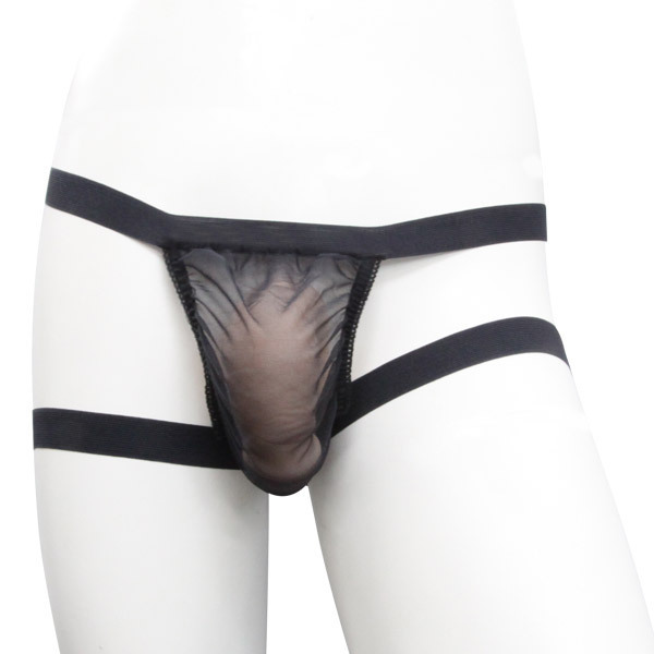 スケスケ黒メッシュ!ショーツのサイドをカットした、Tバック風メンズランジェリー。ウエストサイドと太股に幅広のストレッチバンドを採用!カッコよくデザインされた、セクシーなメンズショーツです。