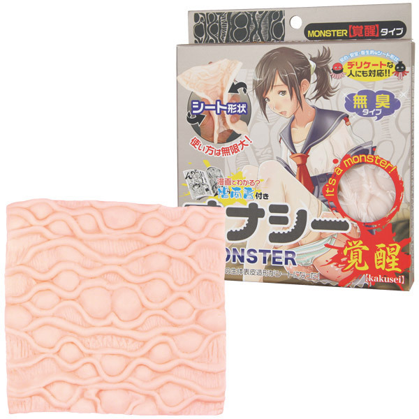 大ヒットホール「ぐちょ濡れ名器MONSTER 覚醒」が、オナニー用シートになって登場!あの複雑に絡みあう外側のちょいグロデザインをモチーフにした、弾力のある無臭の極上スキン仕上げです。手コキや床オナなど、使い方は無限大!女性の角オナニーにもお使い頂けます。また、筒状のオナホより洗いやすく乾かしやすいので、とっても衛生的!初めての方も安心の漫画解説付き指南書とローションも付属。