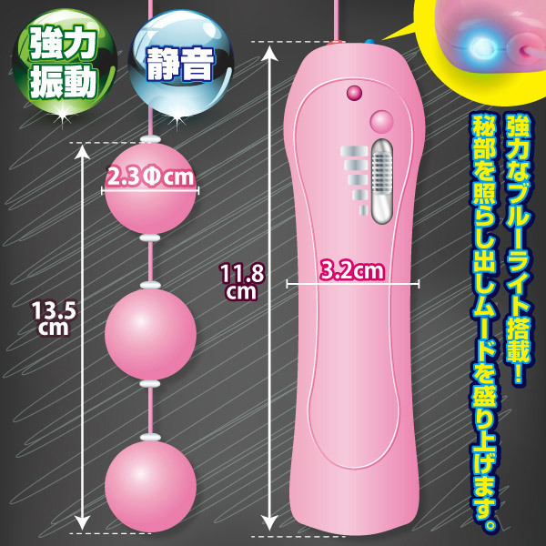 大きすぎず、小さすぎない!ちょうどいいサイズだから初心者から上級者まで満足できる、アナル専用ローター「わたしが選んだとっておきっ」。3つ並んだボールのうち、先端のボールだけにローターを搭載!3段階の強力振動がじんわりとした快感を伝えます。また、操作部本体の先端にブルーLEDを搭載!秘部をイヤらしく照らしてくれるので、ムード作りもバッチリ!見て、使って、大満足できるアナル専用ローターです。単四電池×3本付属。