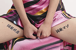 卑猥な言葉にドッキドキ!自身や恋人の肌に貼って楽しむ「調教奴隷」文字のタトゥーシールです。このシールは特殊な素材を使用して出来ているので、皮膚の動きと一緒に伸び縮みするほか、2〜3日は剥がれずに持続できるのがポイント。コスチュームに合わせて貼れば、楽しさがさらに増しますよ。水に強い本格的な調教ステッカーです。