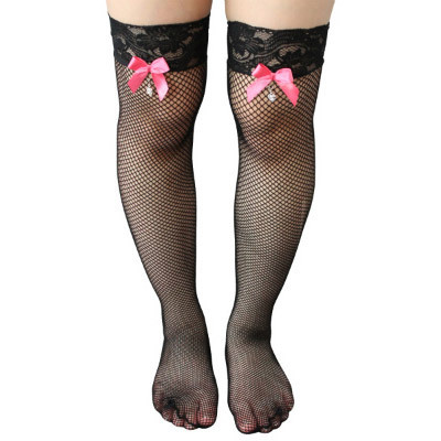 商品番号:b23190 レース付きリボンチャームネットストッキング ローズ