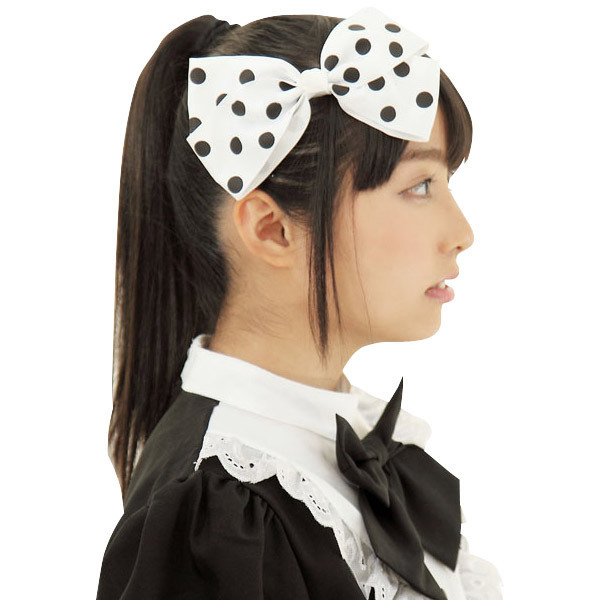 アイドル級の注目度をゲット!コーデの中心にしたくなるビッグリボン。●白地に黒いドット柄●大きめサイズのリボン●裏側にクリップ付き●主役クラスの存在感。髪のサイドに、結んだ部分のアクセントに、バッジ感覚でバッグや洋服のアクセントにも使えそう!ワンポイント的な扱いよりはリボンメインなコーデにシフトしたくなるアクセサリーです。※こちらの商品は受注発注商品の為、ご注文から発送まで2〜3営業日掛かる場合が御座います。