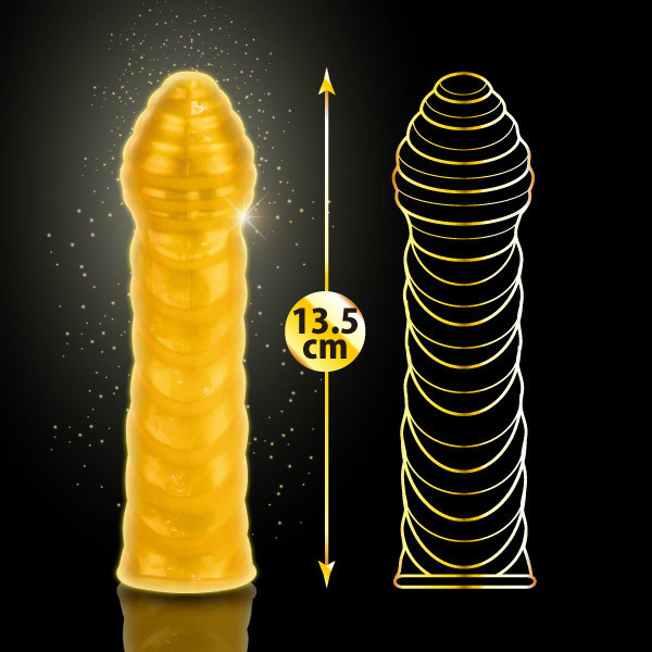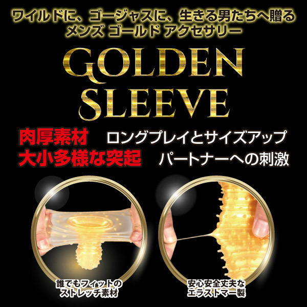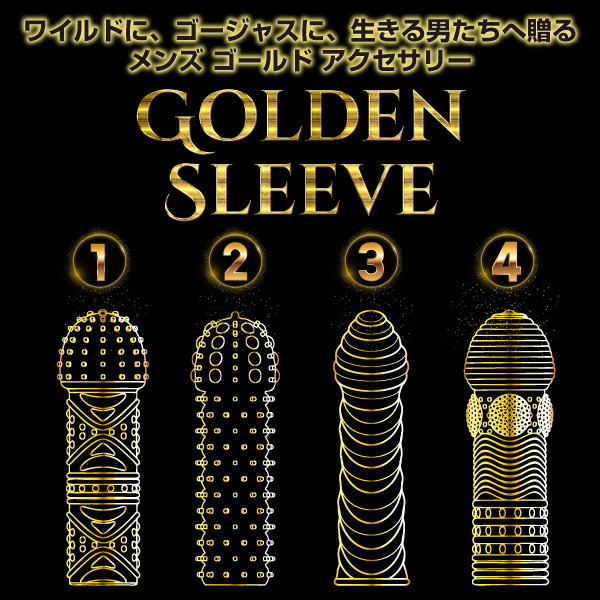 神々しいペニスに大変身!金色に輝くゴージャスなオールカバーサック。●端々まで覆える全長13.5cmボディ●伸縮性に富んだ肉厚エラストマー●さざ波のような曲線のヒダ構造●男性器に沿うリアルフィット型。全4タイプのデザインから選べるゴールデンシリーズの中でもスタンダードなタイプ。なめらかな曲線で、スムーズなのにリズミカルな心地よい刺激を楽しめるペニスサックです。