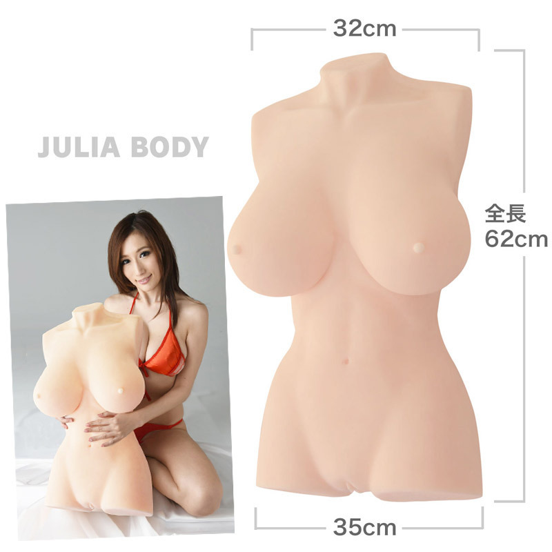 ダイナマイトボディを弄び放題!JULIAを完全再現したトルソー型リアルオナホール。●AV女優「JULIA」の神ボディを再現●重量約20kgのずっしり感もリアル●華奢な鎖骨や豊満な乳房、ホクロの位置など細部まで本物そっくり●下付二穴名器(内部合流の貫通型)●膣:肉食系イボ&ヒダの複雑構造●アナル:極狭×不規則イボ×吸引●足元(左底部)にサインの刻印入り●自立不可の柔らかエラストマー製●たっぷり600mlローション付属。オナホ界に衝撃の走る超リアルボディ完成!生々しいほどそっくりな仕上がりに興奮もひとしお。二穴は内部で繋がっているため、使用後の洗い流しも簡単です。とても柔らかいので、肩と腰を支えて抱き上げるように持ってください。※大型商品の為、送料が別途必要になります。※こちらの商品は受注発注商品の為、ご注文から発送までに数週間掛かる場合が御座います。
