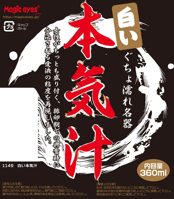 真っ白で超リアル!愛液の粘度をそっくりそのまま再現した本気汁ローション。●360mlボトル入り白濁ローション●程よく絡みつく中粘度タイプ●安心の日本製。色が白いので使い方によっては母乳にもザーメンにもマン汁にも見えちゃう!このローションを持っておけば、どんなプレイだって大盛り上がり!オールマイティに活躍する高クオリティなローションです。