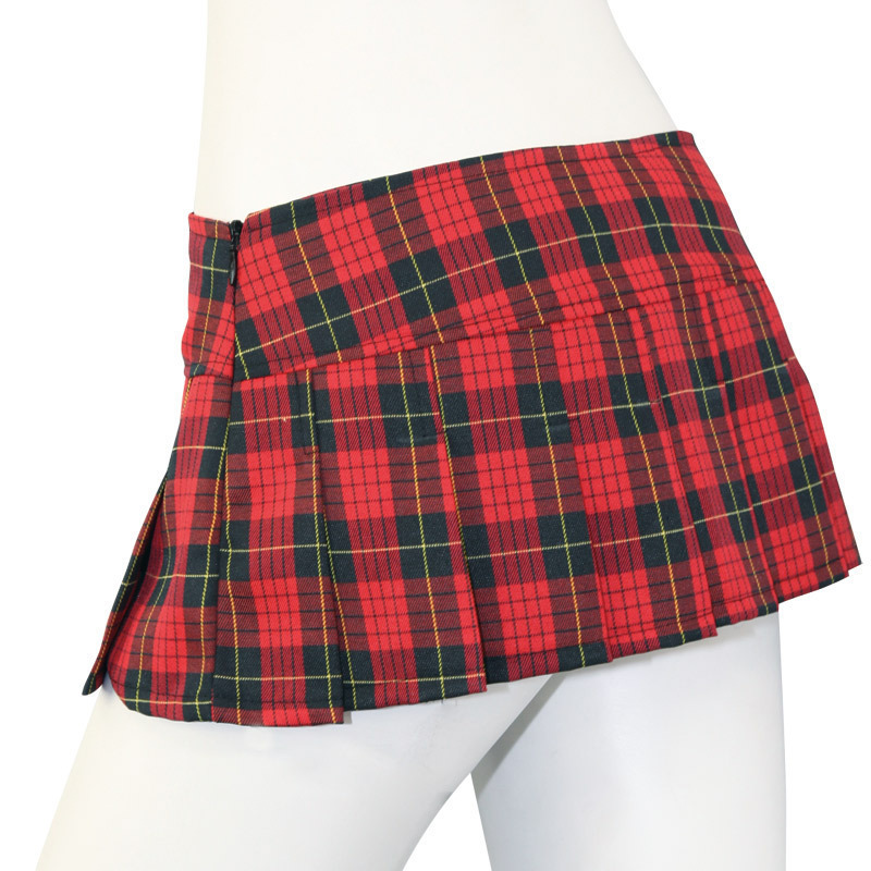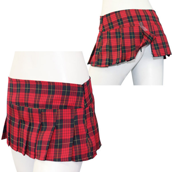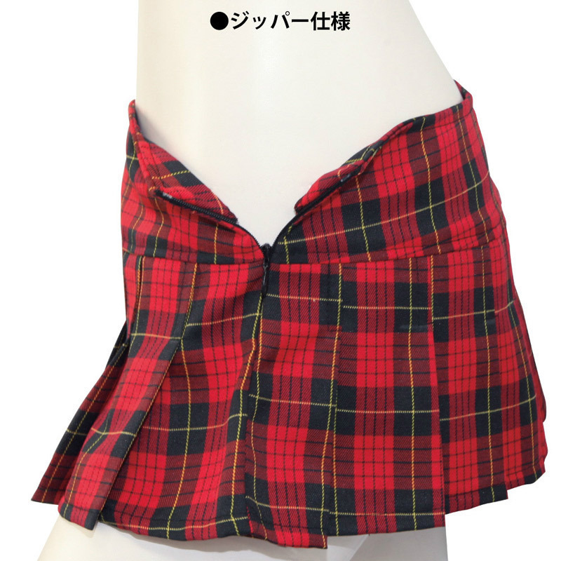 いつも以上にドキドキ必至!ソワソワ感を煽るマイクロミニスカート。●真っ赤なタータンチェック柄●切り替えプリーツ風デザイン●各プリーツを「のれん」状に分割●隠れスリットのようなチラ見え感●サイドファスナータイプ。繋がっているように見えるプリーツも実はひとつひとつ切り離されているユニーク仕様!ヒラッとめくれてしまうので着る側も見る側もドキドキしちゃうコスチュームです。
