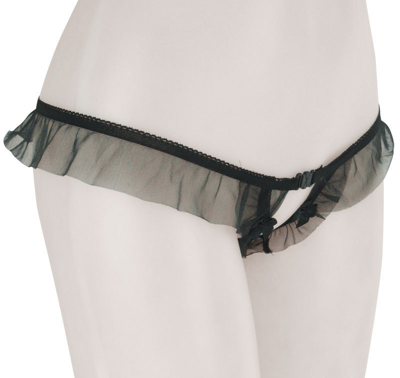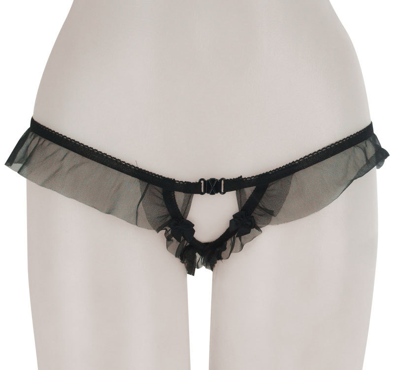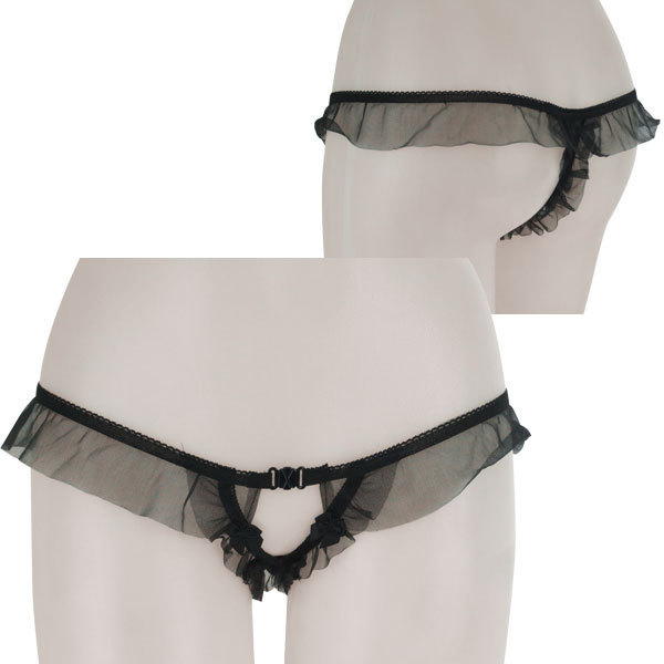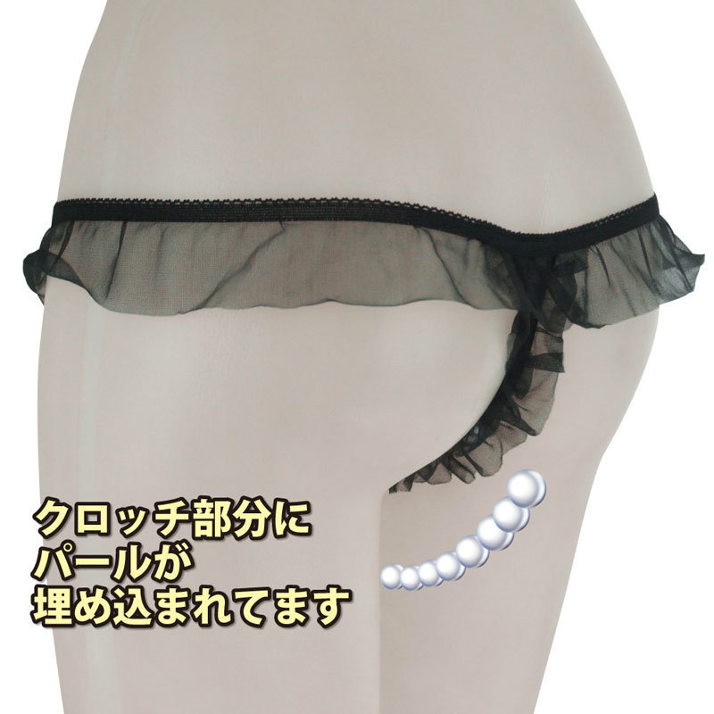 大きめフリルがとってもキュート♪たっぷりシースルーフリルをあしらったパール付きGストリングショーツ。●大人色のブラックカラー●セクシーなV字オープンカット●Mサイズ。クロッチ部分にパールを敷き詰めたドキドキのデザイン!遊び心満載の大人可愛いランジェリーです。