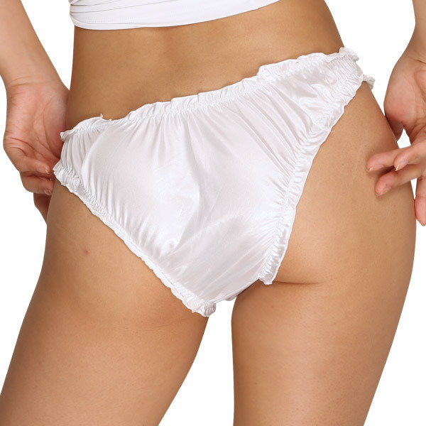 光沢感が妙にセクシー!ロマンチックを詰め込んだ女性用ランジェリー。●サテンのような輝きのフェリカ生地●眩しいほどのピュアホワイトカラー●ローライズ気味な浅めの履き込み●ウエストと足ぐりにたっぷりフリル●フロントはシースルー×バラ柄刺繍●ヒップに映えるハーフバック仕様。ゴージャスフリルやローズレースなどロマンチック要素を取り入れつつ、透け感やハーフバックで大人の色っぽさもしっかり備えた小悪魔ショーツ。勝負下着やデート用としてもおすすめです。