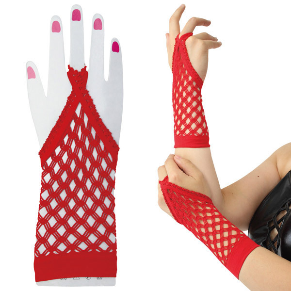 細部まで抜かりなくコーデ!ちょっぴりセクシーなメッシュタイプの指かけグローブ。●目を引く鮮やかなレッドカラー●指先がフリーなフィンガーレス●中指にリングを通して装着●手の甲を飾るデザインレース●手首をすっぽり隠す全長24cm●メッシュネットで通気性も◎●リブ加工でズレにくい仕様。網タイツのようなセクシーさをプラスしてレディな仕上がりに♪ドキッとするほど大人っぽいメッシュタイプの指かけグローブ。これなら自慢のネイルアートもたっぷりアピールできますね。