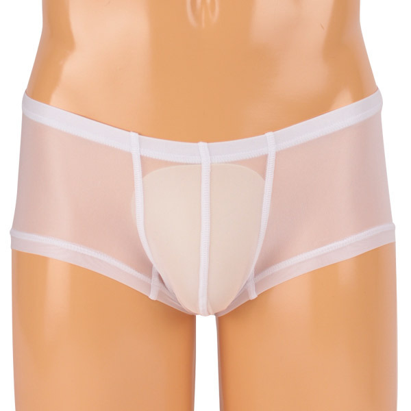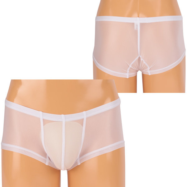 魅せる大人のメンズショーツ!極薄シースルー素材のボクサーパンツ。●すっきりシンプルなホワイトカラー●伸縮性の高いシースルー地●フィット感&通気性も抜群●締め付けない立体縫製のフロント。スケスケのホワイトシースルーがセクシーなメンズランジェリー!ボクサータイプでも膨らみのある立体的なフロントデザインなので、締め付けず程良いフィット感で履き心地も良好です。