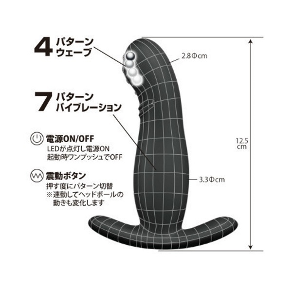 指先でこねくり回されるような新快感!高性能な前立腺責め電動アナルプラグ。●肌触りの良い高品質シリコン●全長12.5cm・最大径3.3φcm●スムーズ挿入のスリムボディ●開発しやすいストッパー付き●丸みのある先端にはイボ突起●内部のボールが小刻みに上下●先端は4段階にウェービング●芯まで響く強力モーター内蔵●盛り沢山な7種振動パターン●簡単メンテナンスの生活防水●電源はUSB充電式。先端のピンポイント刺激と強力バイブレーションで快感をお届け!美しいシルエットの先端に特殊ギミックを仕込んだ「プリティラブ」シリーズの電動アナルグッズ。イボ内側の内蔵ボールが上下して、中からグリグリと圧迫するように前立腺を刺激!スムーズに挿入できるスリムボディで、アナル入門者の開発用にもオススメです。