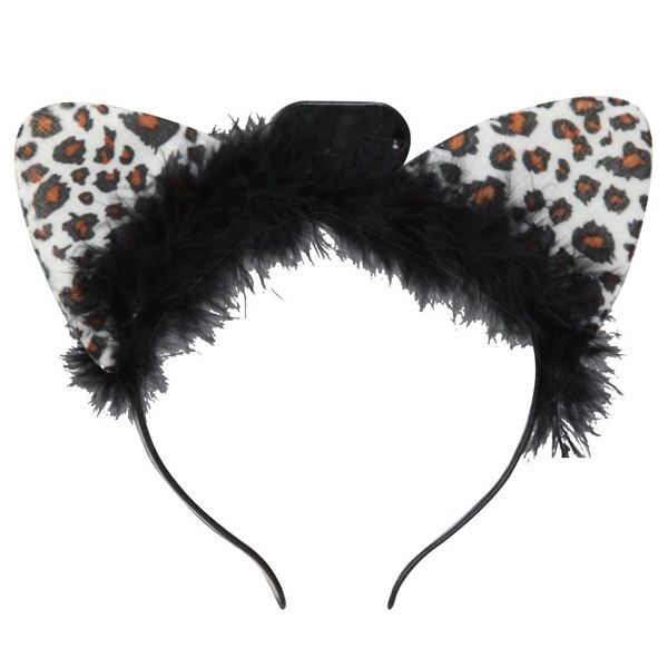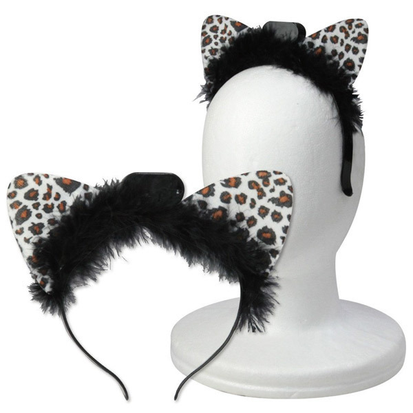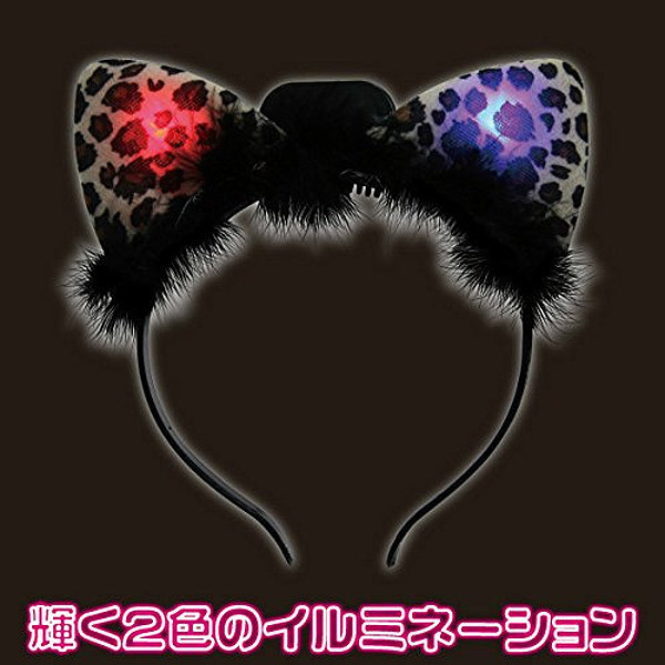商品番号:b25270 イルミネーションネコ耳カチューシャ ホワイトアニマル柄