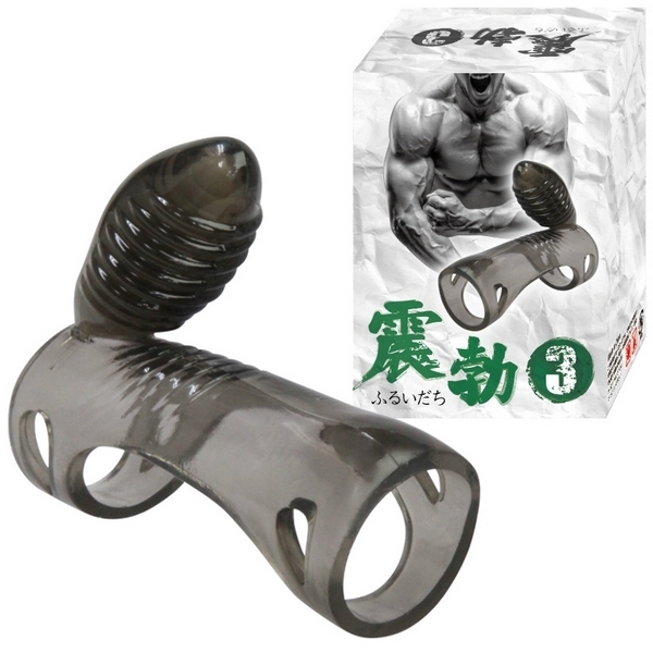 増強×ロングプレイでサポート!男を奮い立たせる電動ペニスサック「震勃(ふるいだち)3」。●クリアブラックのハーフサック●全長8.0cm、竿内径2.6φcm〜●挿入感も楽しめる露出フォルム●伸縮自在の高品質エラストマー●竿を幅広く締め付けて持久力UP●凸凹した大きめクリバイブ突起●付属のミニローターは着脱可。アソコを奮い立たせる心強い味方!竿を締め付けながらパートナーのクリトリスを刺激する攻撃力高めの男性補助グッズ。付属のローターは取り外し可能ですが、電池交換不可の使い切りタイプです。