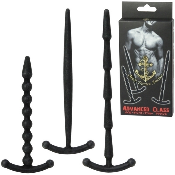 CBT上級者さんの尿道責めプレイに♪錨デザインの尿道プラグ3個セット「メイルデバイスアンカー アドバンス」。●マニア向けの尿道プラグ×3個セット●柔軟性のある高品質シリコンを採用●奥まで届く上級者向けのロングサイズ●タイプ1:挿入部長7.8cm×直径0.8cm●先端から根元まで続く7連ボール形状●タイプ2:挿入部長10.1cm×直径0.7cm●中腹部が緩やかに膨らんだカーブ形状●タイプ3:挿入部長11.2cm×直径0.7cm●引き抜き時が刺激的な5連の円錐形状。究極の快感テクニック、尿道責めで新たな快楽を!フェティッシュなCBTプレイ用のSMグッズ。刺激の高さと負担の少なさを両立させたロングボディの「アドバンス」タイプは、奥深くまで刺激が欲しい上級者さんに最適です。