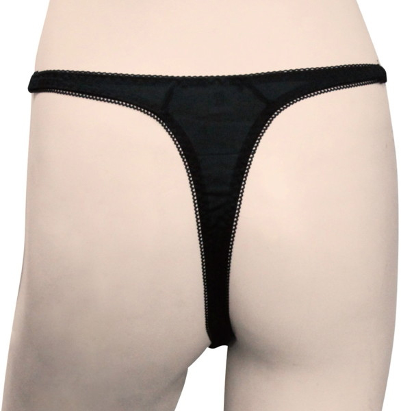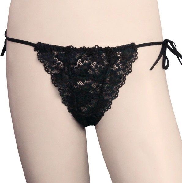 > トリコット生地フラワーレース脇紐オープンTバック ブラック