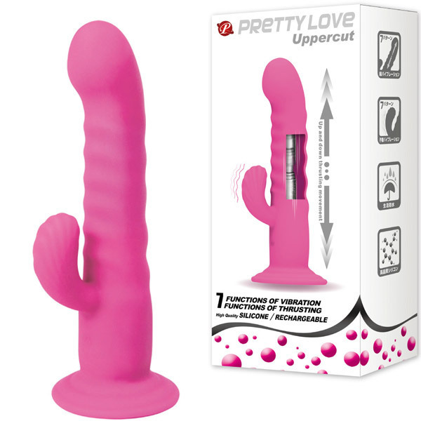 リニアピストンによる縦振動の快感刺激!ハイクオリティな電動ピストンバイブ「プリティラブ アッパーカット」。全7パターンのズンズンと突き上げるような縦振動の『リニアピストン』機能を搭載!ディルドタイプの本体は肌触り抜群の高品質シリコンコーティングで挿入感も◎。さらに、強力振動するクリバイブが中からも外からも同時に刺激!振動とピストンは個別に操作可能です。底面は床でも壁でもしっかり固定できる強力吸盤なので遊びの幅も広がります。奥の奥まで響く振動+リニアピストン機能を搭載した『プリティラブ』シリーズのピストンディルド!丸洗い出来る生活防水仕様で衛生的です。フル充電約120分で連続稼働約40分のUSB充電式(専用ケーブル付属)。