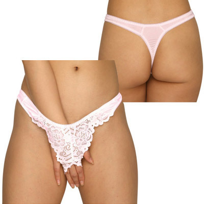 商品番号:b25478 トリコット&レース生地オープンクロッチTバック ピンク