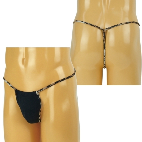 商品番号:b25660 メンズ ストレッチ生地レオパードラインTバック ブラック