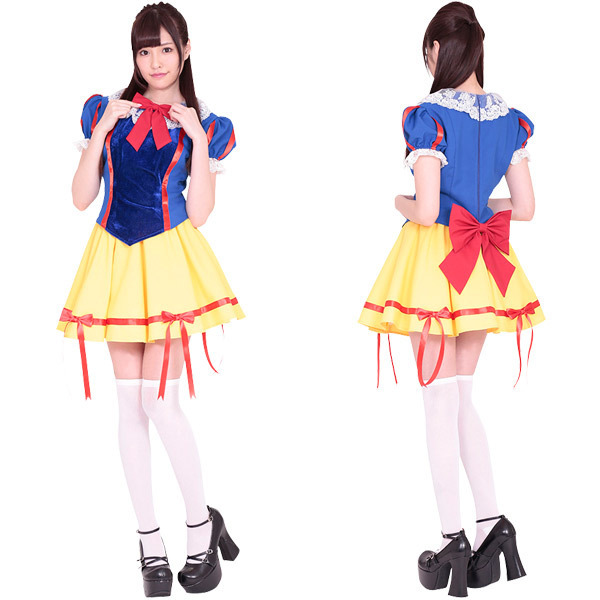 可愛すぎるスノープリンセスに変身♪クラシックなデザインのお姫様コスチューム。青、赤、黄色の定番カラーで仕上げたおとぎの国のヒロイン衣装♪トップスの襟に幅広レース&赤リボン、プリーツスカートには裾リボン、さらに大きめのバックリボンなど可愛いを凝縮!全てがラブリーな愛されプリンセスコスチュームです。※セット内容以外は付属しておりません。
