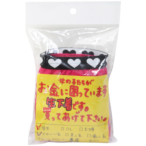 一般女性の生パンティをお届け!エッチな妄想が膨らむ生パンティー。●限定買取りの生パンティ1枚●オナニーが捗るフェチグッズ●ランダムデザイン。お金に困っている素人さんが持ち込んだパンティを、そのままパックしたかのようなリアル感!どんなデザインが届くかは到着してからのお楽しみ!ぜひ買い取ってあげて下さいね。※USED加工を施した新品未使用品です※アソート商品の為、色・柄・形のご指定はできません
