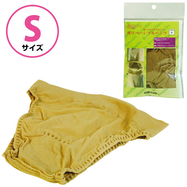 その日の気分で変身♪男女どちらも楽しめるハイブリッドな女装用パンティ「性リバーシブルパンツ(S)」。●肌触りの良いベージュ色のブリーフ●伸縮性抜群のストッキング生地を使用●パンティの前後に筒状のペニス収納袋●下向き装着:女性感覚ですっきりと収納●上向き装着:ペニスを擬似勃起状態で維持●フリーサイズ(最大ウエスト約85cm)●ペニスト筒サイズ(S):7.0×1.8cm。あなたの願望叶えます♪男女どちらにも固定可能な筒を内蔵!股間処理が簡単に出来るショーツ型のペニストッキング。下向き固定の場合はクロッチをずらせばそのまま排尿も可能!ピタっと密着するので包皮を剥いたまま固定すれば、包茎矯正用としても効果を発揮します。※品名のサイズ表記は「筒のサイズ」となり、ショーツは3サイズ全てフリーサイズです。