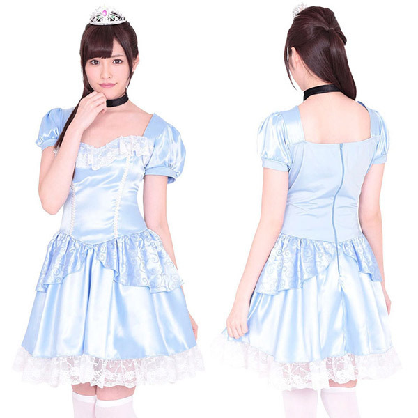 女の子の永遠の憧れ!お姫様気分を味わえるキュートなミニ丈プリンセスドレス。清楚な印象の水色ドレスワンピースに、装いをワンランクアップさせてくれるティアラと黒チョーカーもセット!裾のレース使いなどエレガントな大人可愛い魅力を引き出せるこだわり仕上げのコスプレ衣装です。※セット内容以外は付属しておりません。
