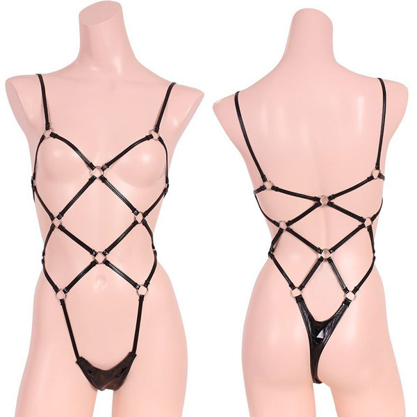 商品番号:b26284 エナメル&リング亀甲プレイスーツ ブラック