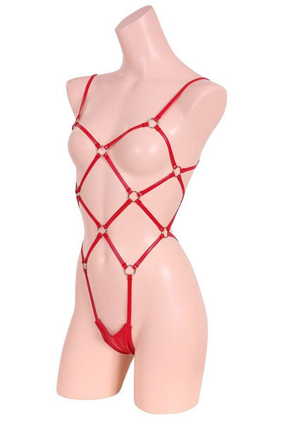 商品番号:b26285 エナメル&リング亀甲プレイスーツ レッド