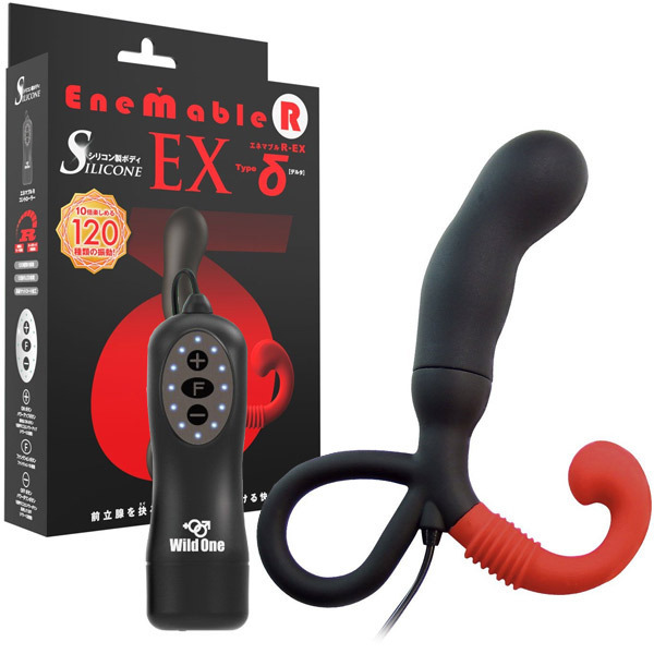 あの前立腺開発グッズ「エネマブル」がグレードアップ♪脳天まで突きぬける120種の快感振動を深い部分で味わえる電動エネマグラ「ENEMABLE R EX Type-δ」。サラッとした肌触りで高級感あふれるマットコート仕様の前立腺刺激グッズが全120種類の振動を可能にした新モデルのIC機能付きコントローラーで登場!微弱から激震への12段階スピードに加え、多彩な10種類の振動パターン変化機能を搭載しています。会陰部を刺激するフックには3段階調整可能な可動式アームを採用し、確実に会陰部を刺激します。超低速からターボモードまで飽きのこない多彩な振動を搭載した深化系アナルグッズ!『デルタタイプ』は前立腺を刺激する重量感のある肉厚太めなヘッドが特徴です。単四電池×2本付属。