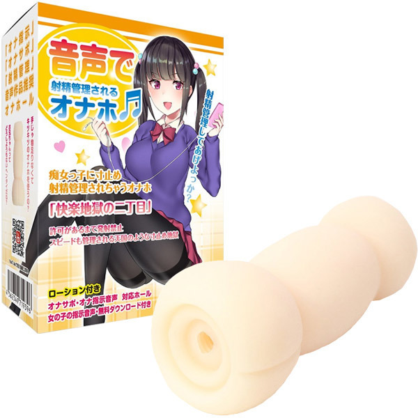 年下の痴女っ子が射精管理!音声を聞きながら天国のような寸止め地獄を楽しむオナホール「快楽地獄の二丁目 音声で射精管理されるオナホ」。射精管理の妄想を商品化!オナホ使用に最適化した専用の痴女っ子ボイスで終始射精を管理されます。音声作品向けの専用オナサポホールは長時間でも疲れにくい太さ&重さ!外側はスピード管理しやすい凸凹加工!内部は締めつけ感のあるシンプルなストレート形状で、奥まで続く細かなヒダヒダが亀頭と裏スジを擦り上げる快感ヒダ構造です。音声無料ダウンロードカード、ローション100ml付属。エッチなボイスで射精管理!音声と専用オナホがセットになった声で感じるオナニーグッズ。オナホールは音声無しでも十分楽しめる快感構造!付属しているカードのURLから音声をダウンロードして、通常の楽曲と同じようにスマホやPCなどで再生してお楽しみ下さい。CV:御上みみ、イラスト:豚たま子。