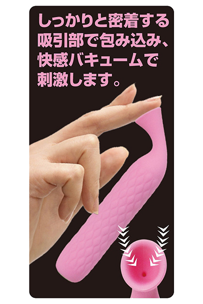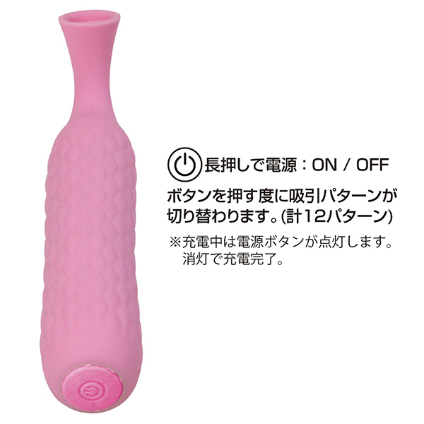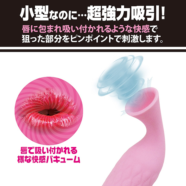 ピンポイントバキュームに特化したバキューマーです。小さいながらも吸い付き刺激に関しては一級!スティック状のボディは高品質シリコン素材で肌触り良く、先端は絶妙な角度で乳首やクリトリスに完全フィット♪まるで人の唇に包み吸い付かれているような刺激に、思わず声が出てしまうほど。ボタンをプッシュすれば12もの吸引パターンを選択できるので、お好みにあわせて調節していただけます♪生活防水仕様なので、万が一吸引口から水分を吸ってしまっても安心の排水設計!およそ90分の充電で60分の連続稼動が可能です。