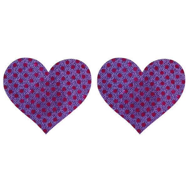 ピタッと貼るだけの簡単仕様♪バストトップに貼るだけで、セクシーな大人の雰囲気を醸し出す下着感覚のニップルジュエリー「ニップルシール ドットハート 紫」。同色ペア1組セット、1回使い切りシールタイプのボディアクセ。可愛らしいドット柄のハート型デザインはショータイムやナイトパーティーにも最適!透け・突起防止・擦れ対策にもお勧めです。