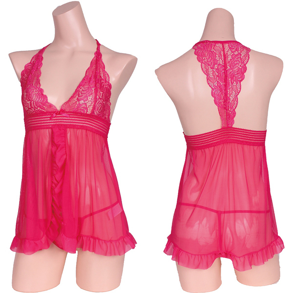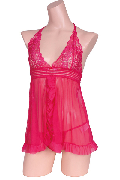 > 恋心フェミニンベビードール&Tバックセット ピンク