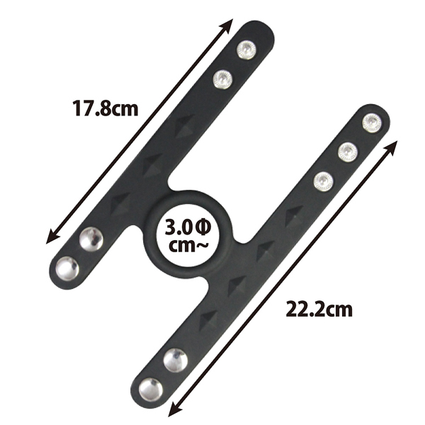 幅広なベルトで玉袋と根本を同時に締め付け、そのままリングが竿の付け根部分を締め付けることで、男性機能アップをサポートしてくれるスナップボタン式のコックリングです。シリコン製のコックリングなので伸縮性はバツグン!最高の肌触りと装着感が味わえるほか、竿を根本から締め付けることでアクセサリーとしての機能も発揮し、スタイリッシュな拘束感をも味わえる逸品です。幅広のベルトは玉袋と根本の二箇所をしっかりと固定しながら、男の持久力、射精感、そして勃起力増大を最大限にサポートしてくれます!