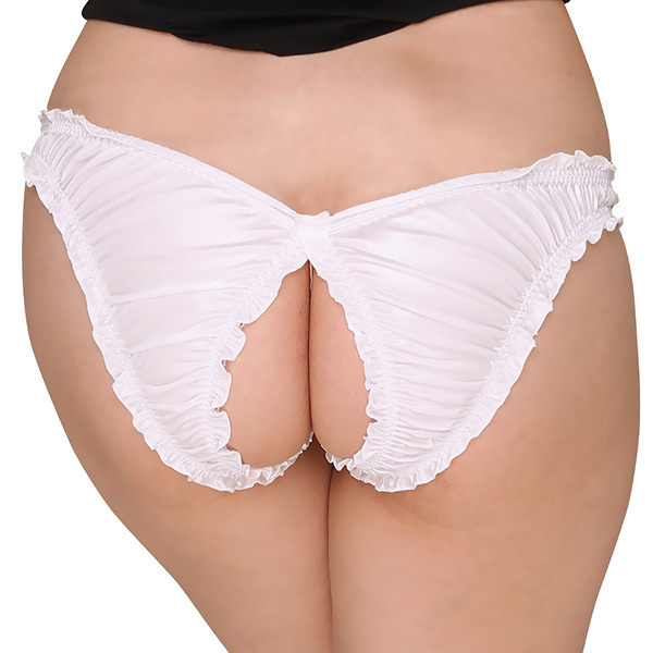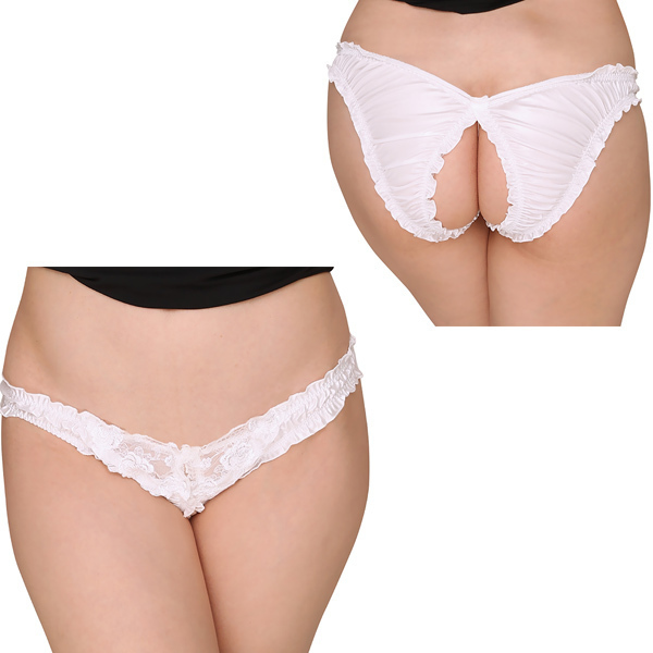 光沢感のあるフェリカ生地とレースのコンビ生地で縫製された日本製ショーツ♪ローライズ仕様で既にセクシーさを感じさせていますが、なんとクロッチ部分とお尻部分を大胆にカットしており、どこから見てもエロさを感じさせるデザインとなっています。挿入時も脱ぐ必要がないので、下着をつけたままが良いと言う方にはオススメの一着です!