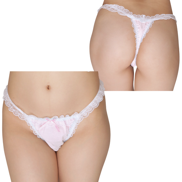 白レースで美しく縁取られたコットン生地素材の日本製Tバックショーツ。ピンク×スカラップレースのコンビネーションは、女性の乙女心を射止めるデザインとなっています♪程よくボディにフィットする肌馴染みの良いウエストゴムは、エレガントなレースでウエストを華やかに飾ります。そしてバックはTバックタイプと、キュートな見た目とは裏腹に大胆な女性としても演出!女性だけでなく男性受けも良さそうなショーツです♪