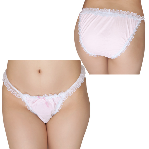 商品番号:b27282 白レースコットンフルバック ピンク