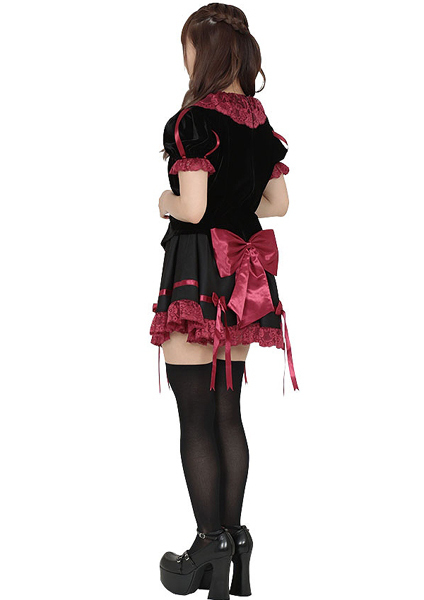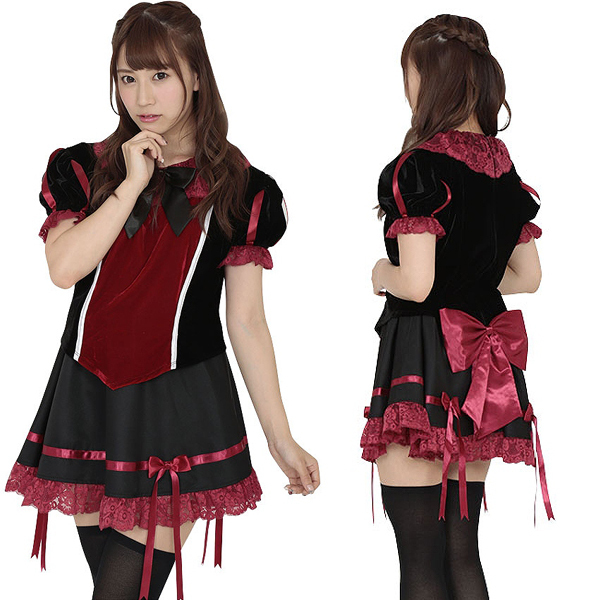 ハロウィンコスプレを通販で買うならコチラの商品はいかがでしょうか?ゴシックなプリンセス風コスチュームは、黒と真紅のカラーを取り入れダークな雰囲気を醸し出すことで、闇堕ちした血みどろなバックボーンを持つ姫をイメージ!赤の繊細なレースや各所に配置された赤や黒のリボンが、衣装のデザインを可愛らしく上品にまとめています。ミニ丈スカートなのでニーハイと併せてタトゥーシールで足元を飾れば、ハロウィン気分も一層高まりますよ♪