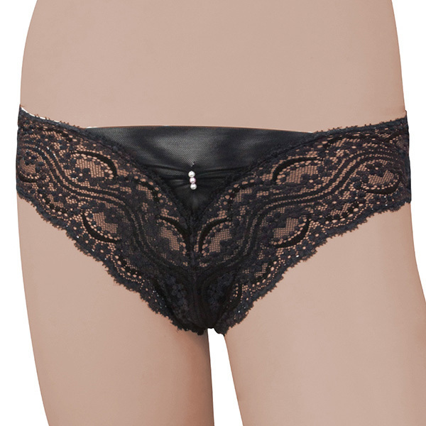 ギャップ萌えを狙うなら大人の黒!透け感たっぷりな総レースの日本製Tバックショーツ。クロッチ部分と下腹部下の生地以外は全て総レースというセクシーっぷりで、アダルトなブラックカラーがより一層エロさを際立たせています♪後ろもTバックタイプなので大人の色気を感じさせ、そこにレースが加わることで上品な仕上がりとなっています。また、フロント部分には小さなビーズが三つついていてちょっとしたアクセントに♪普段清楚な格好をしている女性がこんなランジェリーを身に着けていたら、そのギャップに男性もドキッとするはず!ぜひ勝負下着としていかがですか?