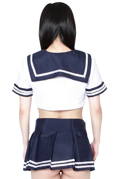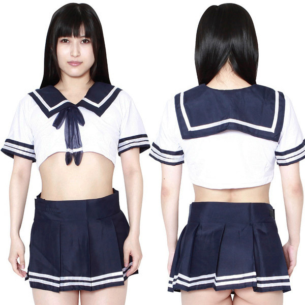 セーラー服の定番カラーといえば紺×白!マイクロ丈スカートやミニ丈トップスなど、露出度高めのエロさ感じるミニ丈セーラーコスプレが登場しました♪短めの衣装から見えるお腹とお尻がお色気たっぷり!着心地の良いストレッチトップス、ミニスカート、Tバックの3点セットです。