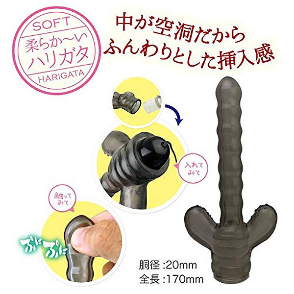 この柔らかさがクセになる!?これまでに無かった新鮮な感触が味わえる、中身が空洞の柔らかなハリガタです。こちらはアナル用に開発された商品で、ボールが連結したようなくびれが続くシャフトに、根本が翼のように広がってフィット感を高めてくれるモデルとなっているのが特徴です♪程よい硬さとプニプニとした柔らかさを併せ持っているのでアナルへの使用感は抜群!中身が空洞のため軽く、女性でも簡単に扱えます。底部にはローターを挿入して楽しめるように設計されているのも嬉しいポイント♪透明感のあるスケルトンカラーだから挿入すると中まで見えちゃうかも!S、M、L、アナルタイプと、初心者から上級者まで楽しめるシリーズ展開も魅力的です。