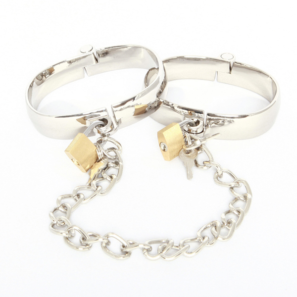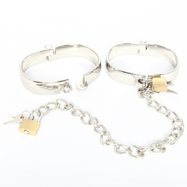SMグッズで人気のブランドSMVIPから金属製足枷が登場!足枷の素材は合金メッキでデザイン性に優れ、鏡面仕上げで見た目も美しいです。楕円のカタチで少し緩めな装着感が自慢のこちらの足枷は、蝶番を中心に開閉するタイプで装着もしやすく、付属の南京錠でロックすることで、逃げられない拘束感を与える事が出来ます!チェーン長は30cmとなっており、これはプレイに最適な長さで足の動きを抑制するのにピッタリ♪両足を拘束しながらのローター責めやバイブ責め等、ひとつは持っておきたいSMグッズです。