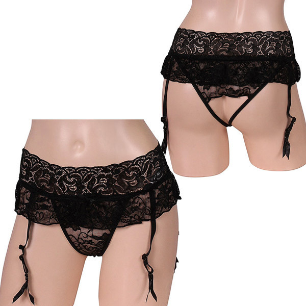 > セクシャルな魅力満載オープンショーツ一体型ガーターベルト ブラック
